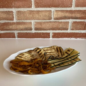 Zucchine, peperoni, melanzane cotte alla griglia.