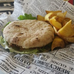 Tortilla con pulled pork, salsa coleslaw, senape, maionese
